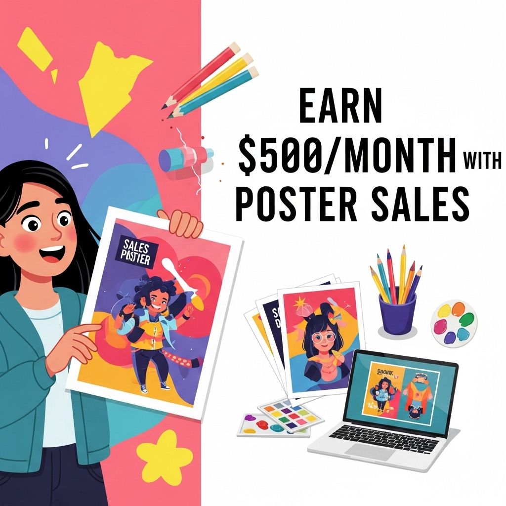 You can earn $500 a month through poster sales by creating unique designs, marketing them effectively online, and utilizing platforms such as Etsy, Redbubble, or your own website to reach customers.