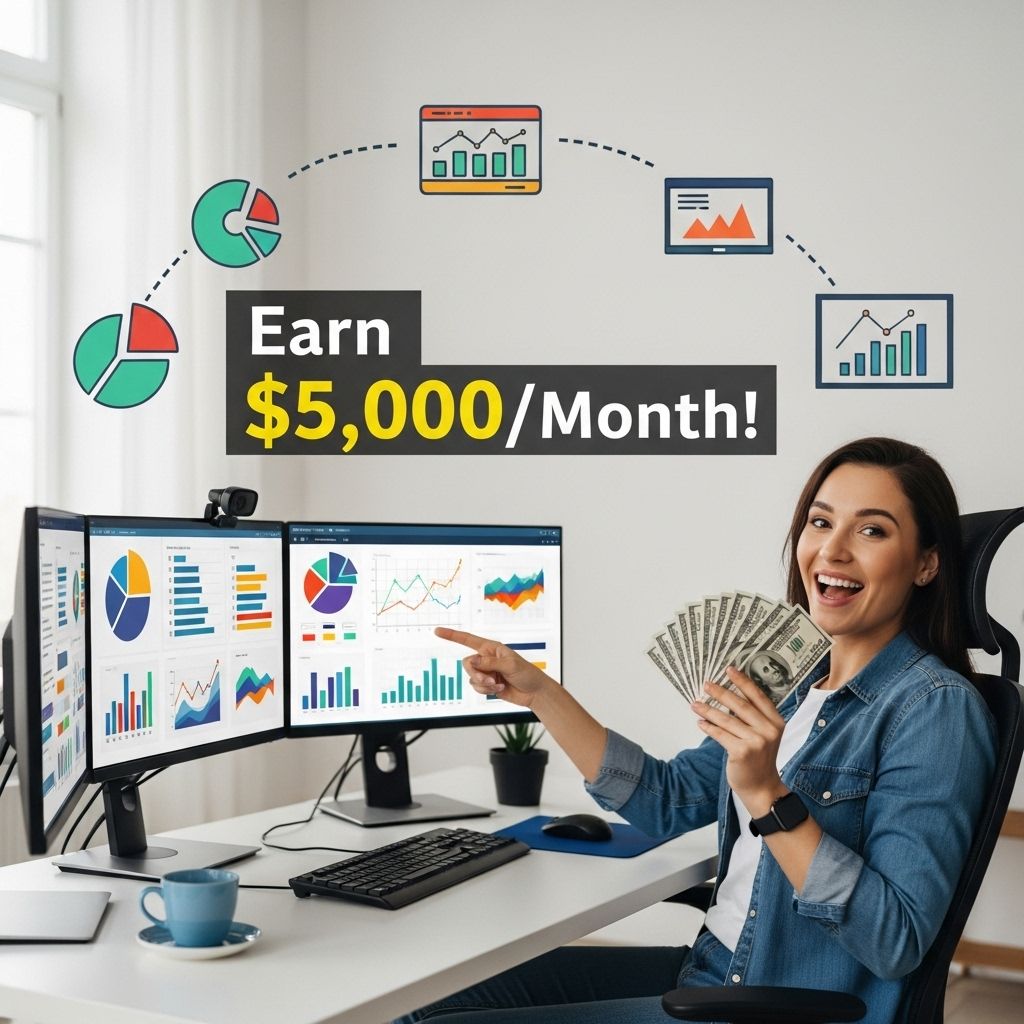 You can earn $5,000 a month by offering your data analytics services as a freelancer, working on multiple projects, or by becoming a full-time employee in a company focused on data analytics.