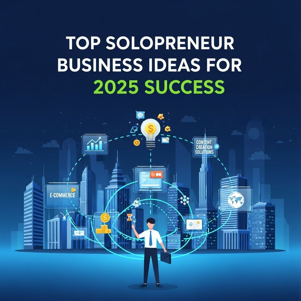 Top solopreneur business ideas for 2025 include digital marketing consultancy, e-commerce stores, online coaching, content creation, and app development.